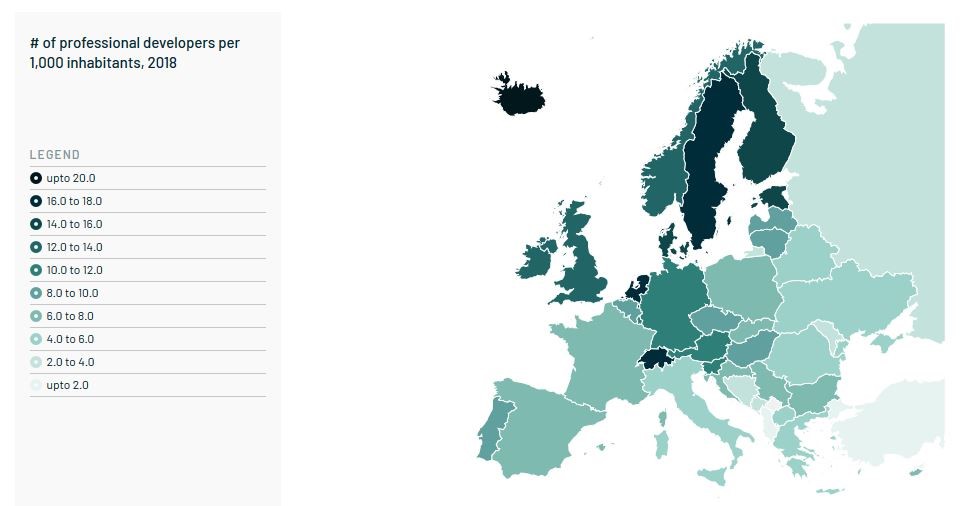 Op Parijs en Londen na blijkt (groot) Amsterdam (met 216.800 developers) momenteel de grootste stad/regio/hub in Europa voor professionele developers, aldus het onderzoek. In Parijs worden er ‘slechts’ zo’n 50.000 méér geteld, in Londen ongeveer 140.000, aldus gegevens van Stack Overflow. Moskou en Keulen volgen met zo’n 50.000 mínder developers. Dat grote aantal in Amsterdam is echter nog niet genoeg om aan de vraag te voldoen, zo blijkt uit gegevens van Indeed. Van de Nederlandse vacatures voor software-engineer blijkt namelijk 46 procent moeilijk te vervullen. En dat percentage is niet alleen het hoogste van Europa, het blijkt zelfs met 42 procent (!) gestegen ten opzichte van 2017.